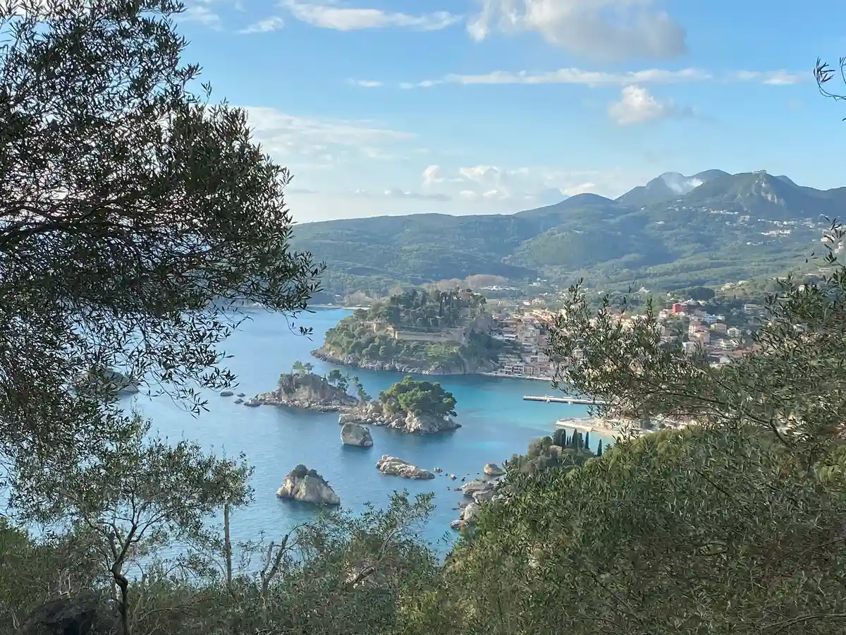 The panoramic view of the sea, Parga, and the island is breathtaking.