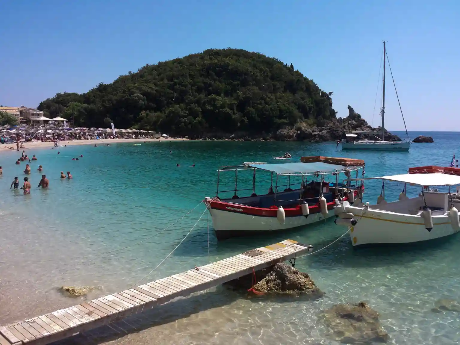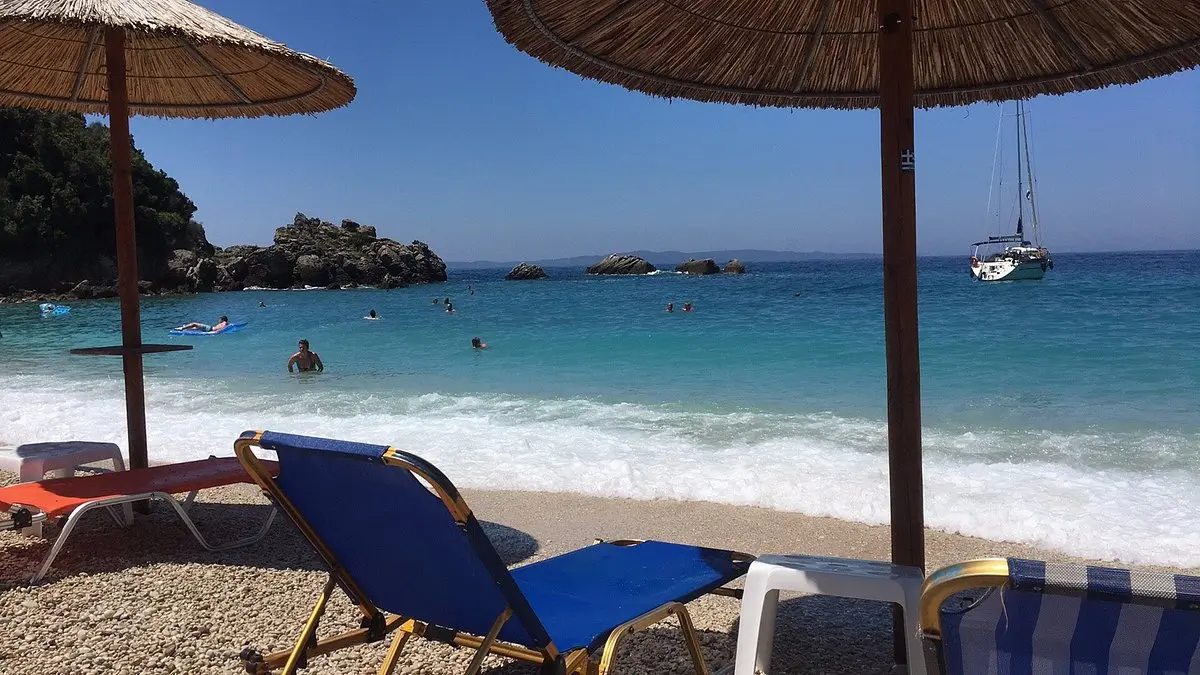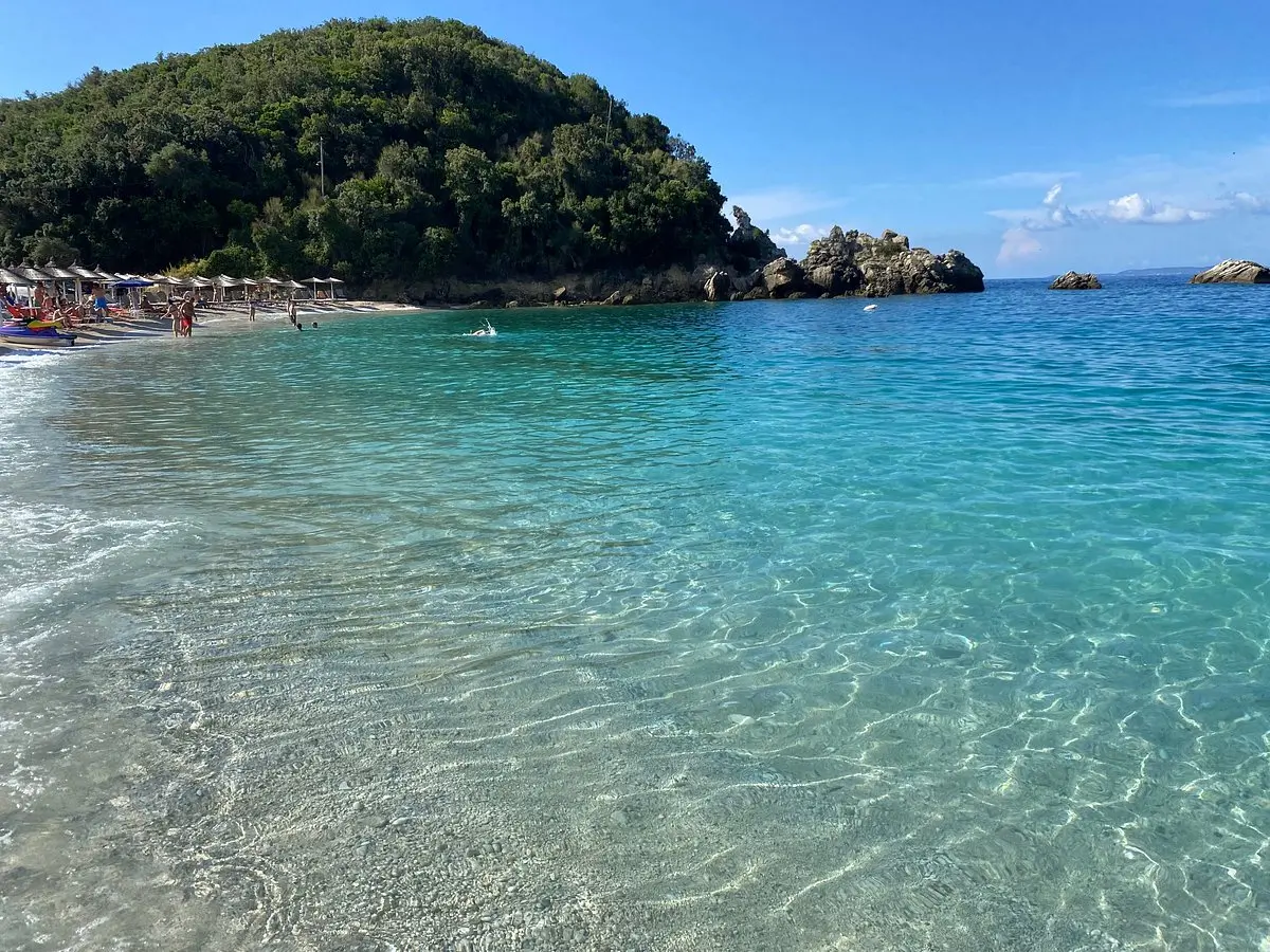 Sarakiniko Beach is a beautiful, crescent-shaped bay a short drive from Parga, known for emerald waters, coarse sand and pebbles, and a relaxed atmosphere. Sheltered by green hills and rocky headlands, it offers a more tranquil setting than Parga’s town beaches.